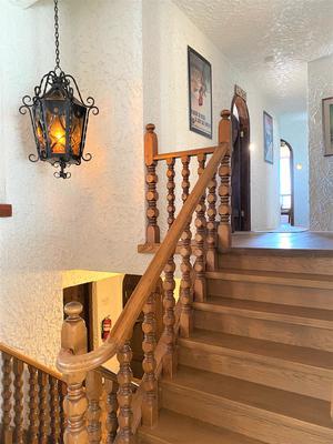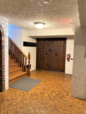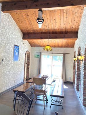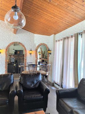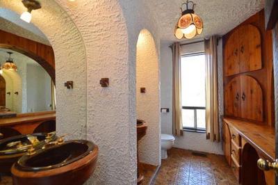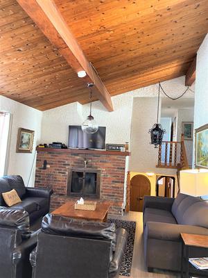 Affectionately known around Tyrolean Village as \”the Castle\”. This Spanish style Chalet is approximately 3,200 square feet in size and is set on a private 1 acre lot with beautiful views of Blue Mountain.The unique interior design of the chalet with its huge wood doors and stucco walls will amaze you. The main floor features a large kitchen and dining area that open up to a living room with a beautiful brick, wood burning fireplace.